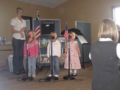 She was one of three to sing Twinkle Twinkle Little Star. When they were asked to return to their spots, she shouted to me, "Mommy! I sang a song at the microphone!" During much of the performance, she twirled around in her pretty dress. She also raised her hand when the students were asked who had an idea, and said, "I HAVE AN IDEA!" but then couldn't follow through with it, so a little boy shared his idea with everyone. I was all smiles!