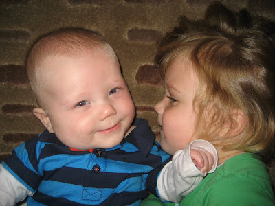 My great friend, Katie, recently told me "It's scary how much your kids look like each other." OH MY GOODNESS! She is SO right. I find it wondrous how my two children, conceived years apart, opposite genders, could somehow manage to pull from mommy and daddy the very same coloring, features, etc. when the possibilities from our two immense gene pools is infinate! I mean, my mother is darker, with brown eyes and a deeper skin tone. James' father, the same ---darker coloring. In our two families, we've got small noses, big noses, green eyes, blue eyes, brown eyes, brown hair, blonde hair, tall 'uns, short 'uns, etc, etc, etc. I cloned Wendy and added male parts. Seriously. I do hear it a lot now, too. "He looks just like Wendy!" Mm-hm!